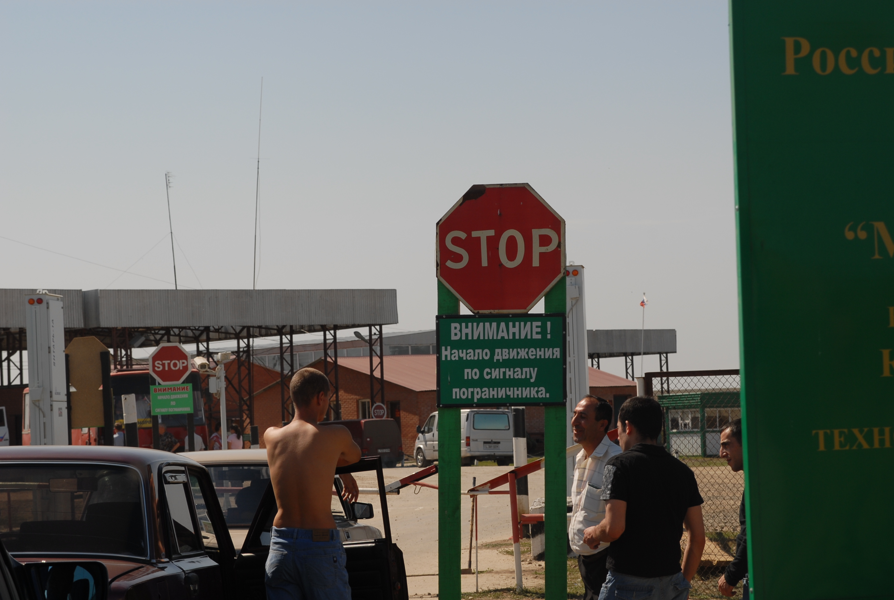 russia. All'ingresso in Kazakistan (nel gabbiotto hanno la telecamera scanner che inserisce a computer la foto) incrociamo un landrover francese. La donna che aspetta ci racconta che erano 12 macchine dirette in
