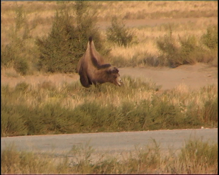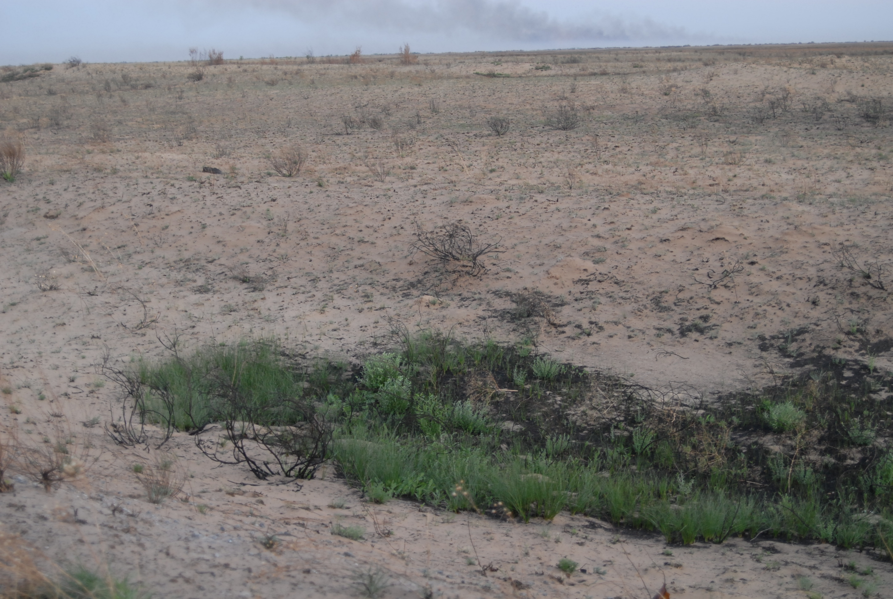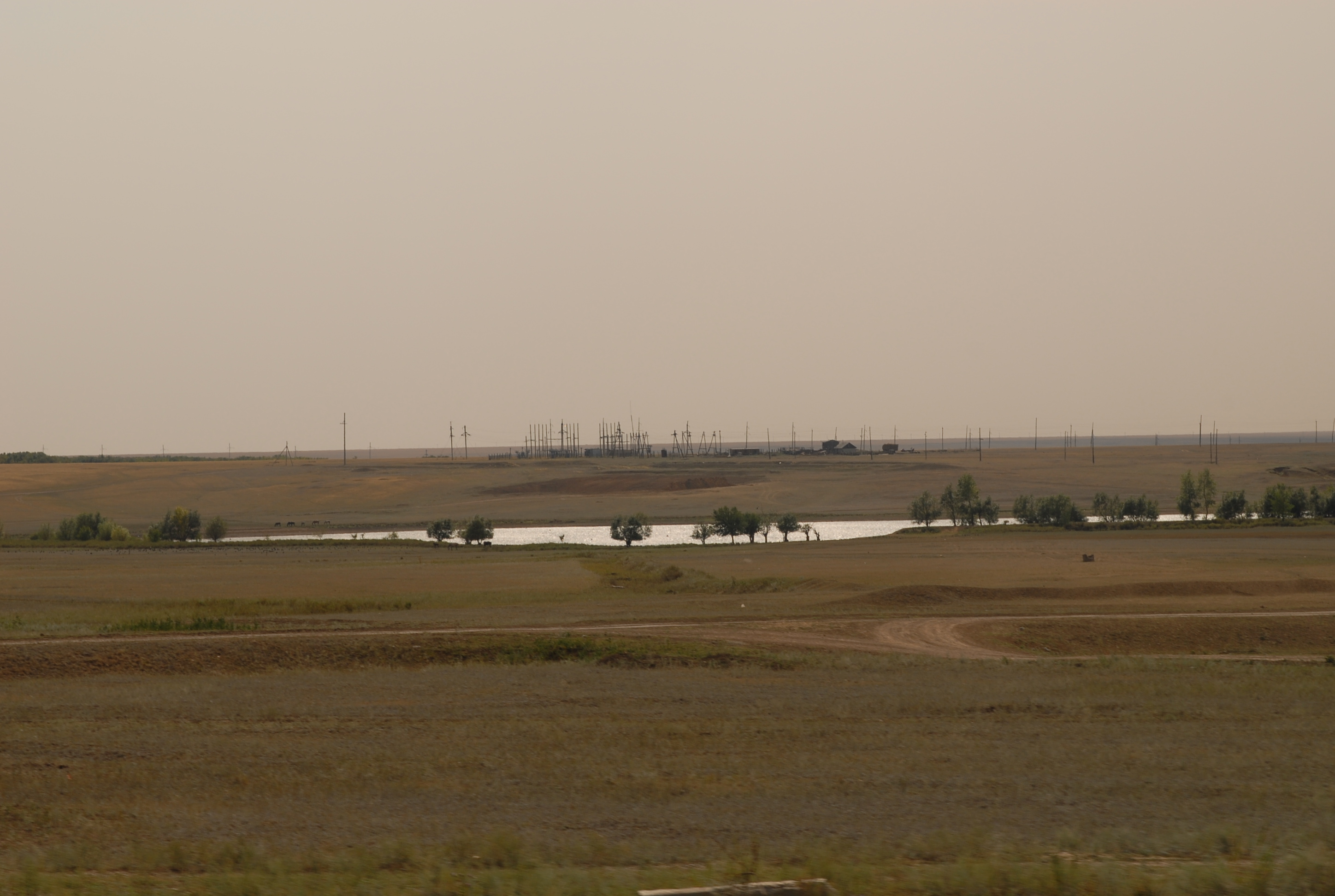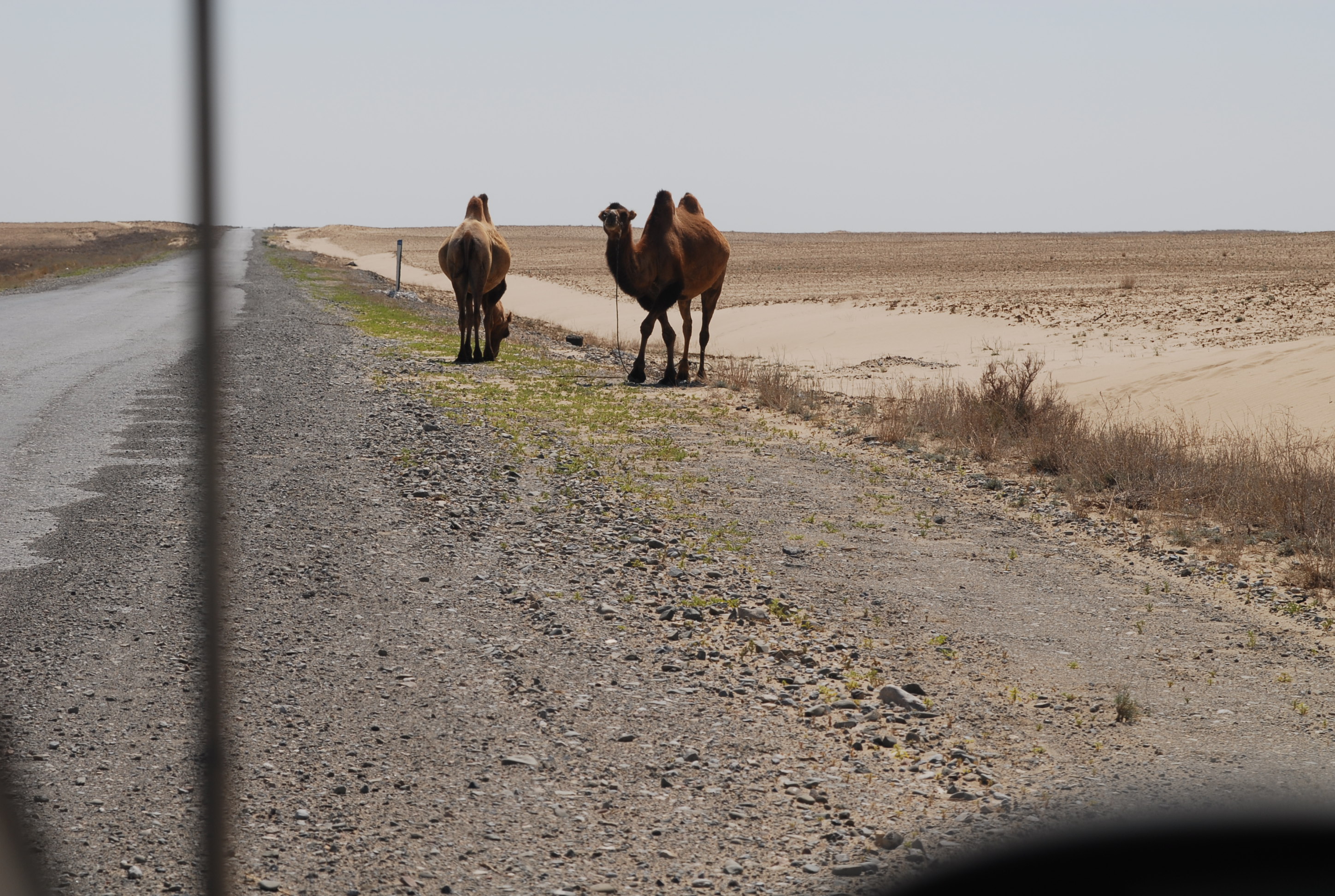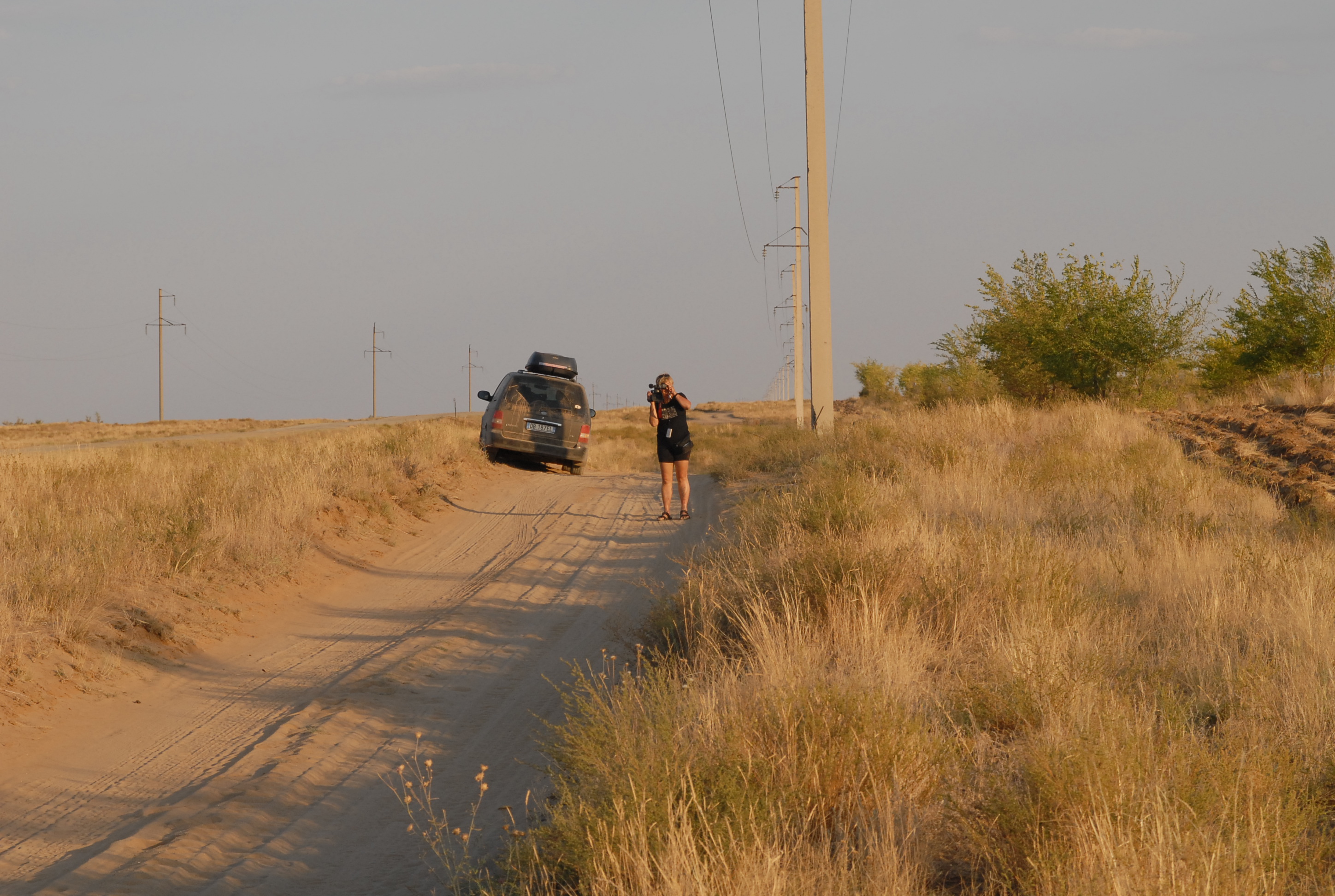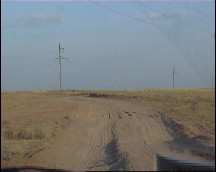 60 kilometri dopo Aktjubinsk ricomincia la solfa: due strade di sabbia con in mezzo una follia in asfalto... ma certo, con la luce, non è