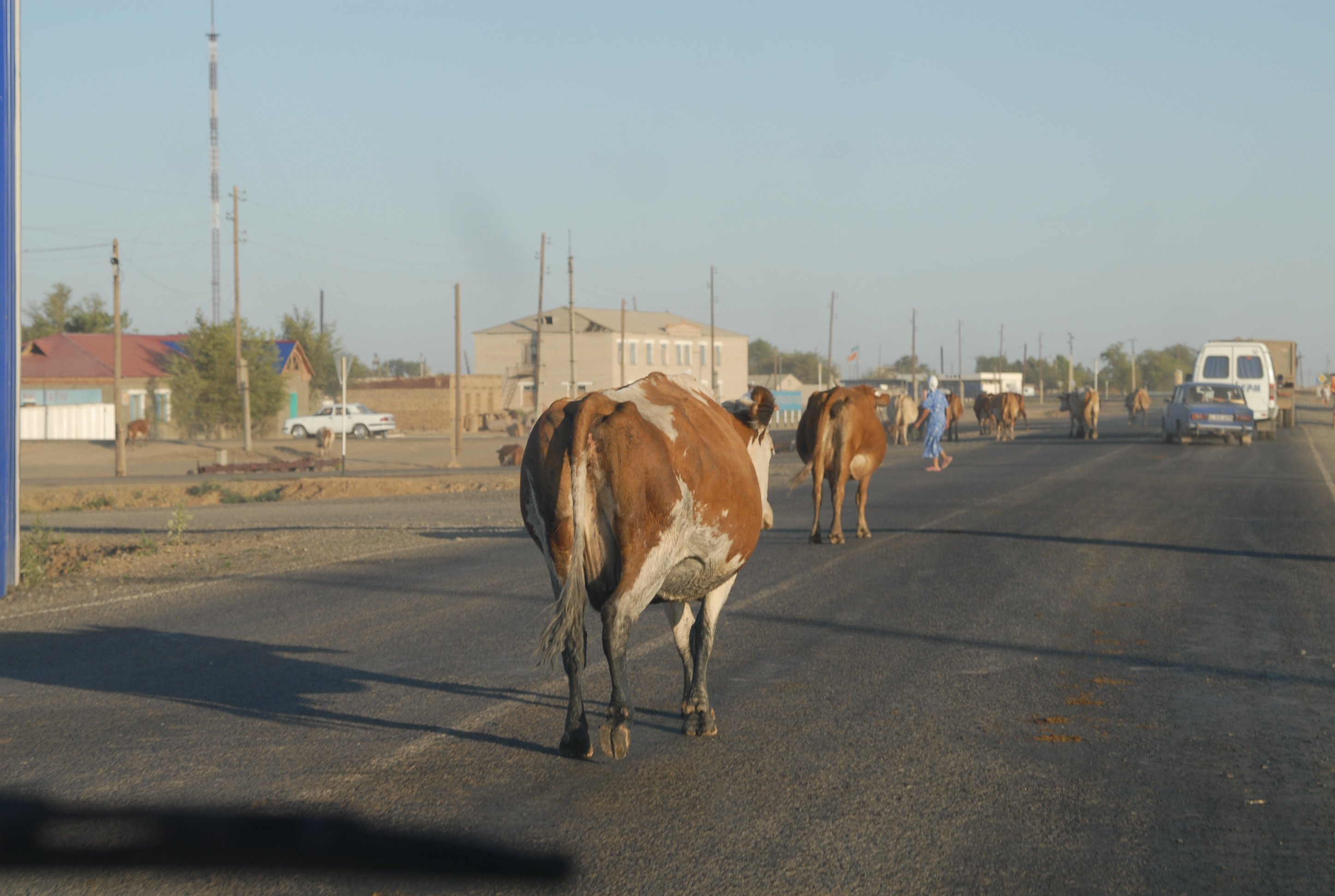 La mattinata passa rapida, la strada migliora e facciamo altri 200 kilometri, arriviamo a mezzogiorno ad Aktjubinsk, salutiamo i veneti e