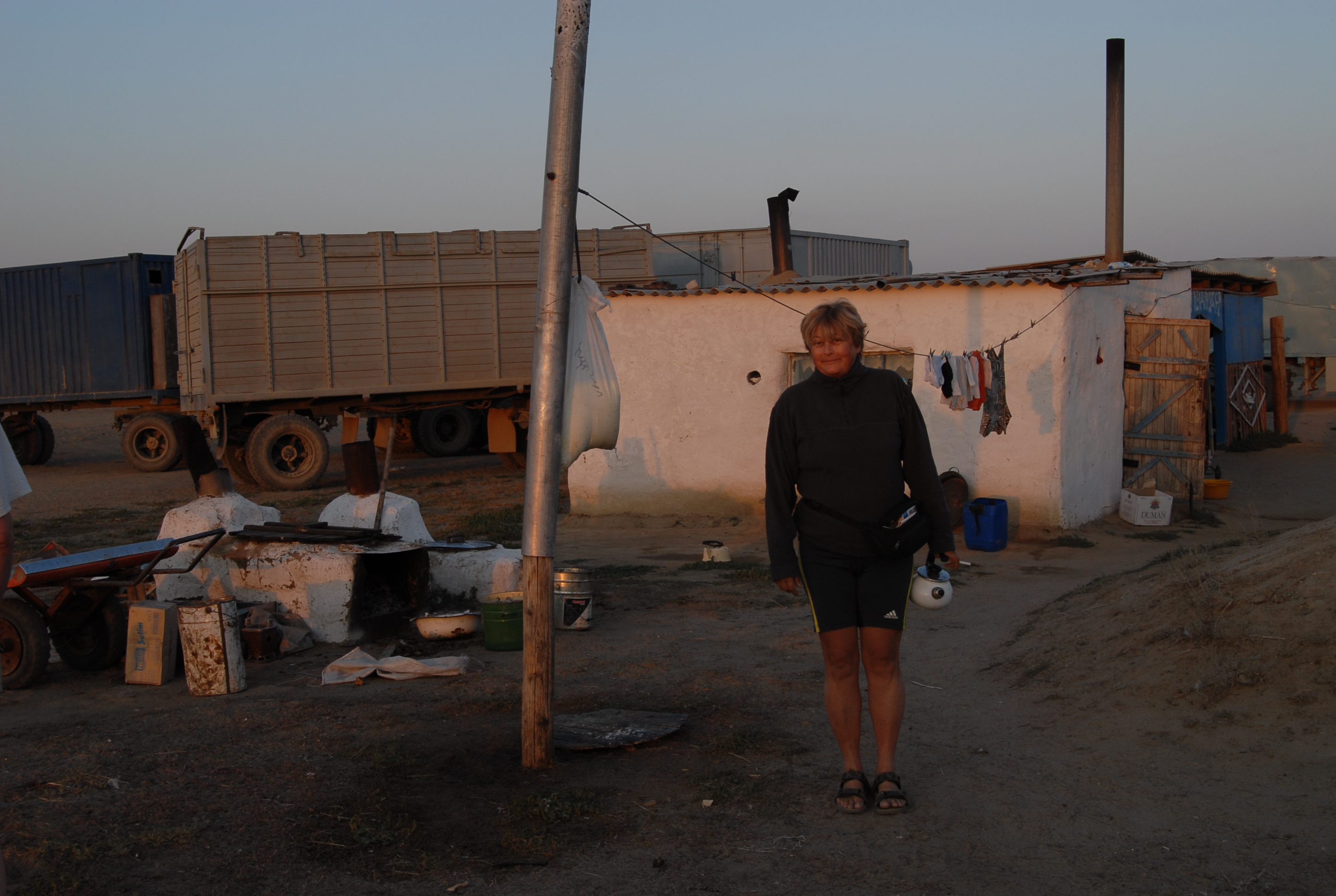 si tratta di una famiglia kazaka, sono molto cordiali e simpatici, sembra che siano pratici, ci dicono che continuerà così fin quasi ad Aktjubinsk, con una strada centrale in ricostruzione e due (non