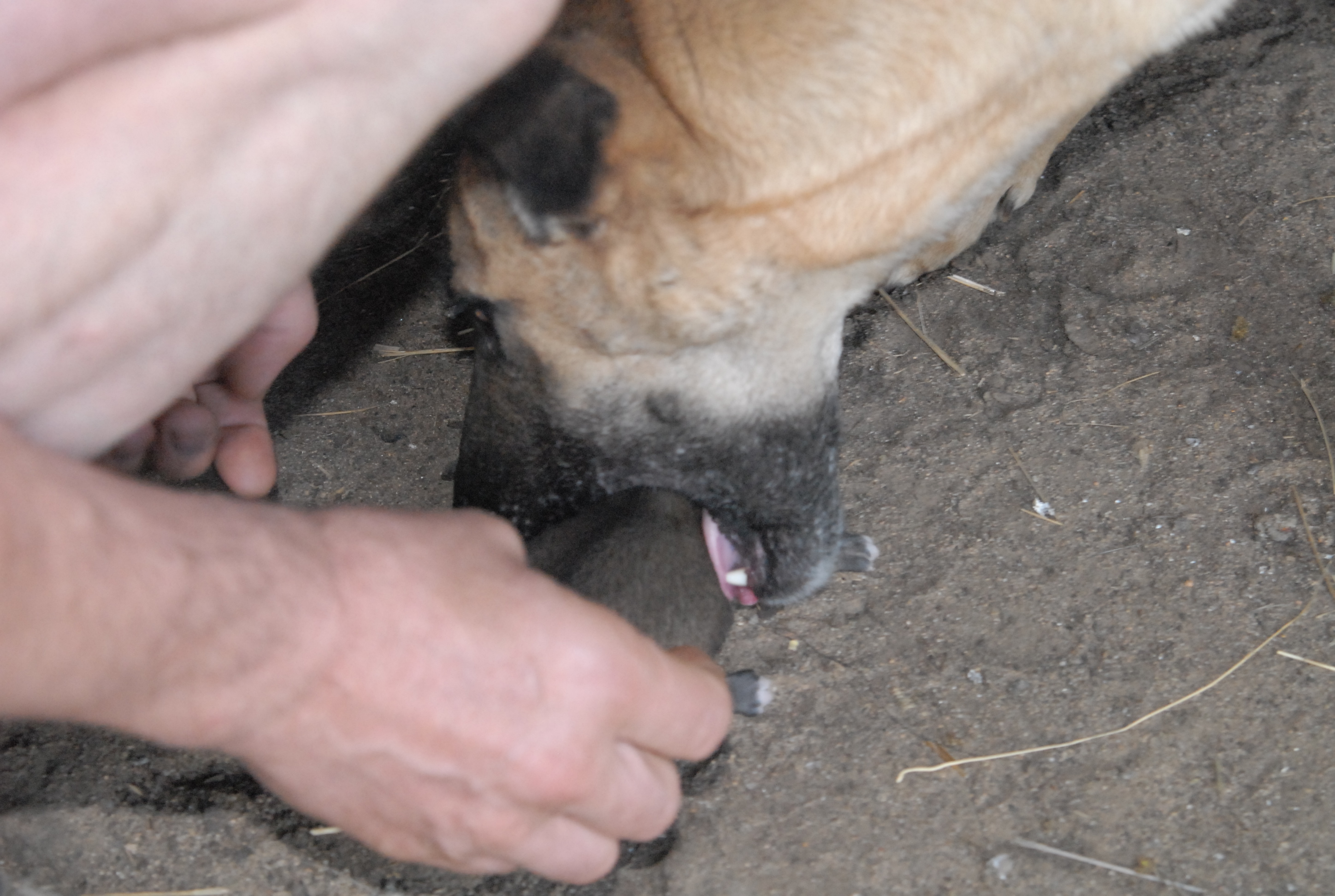 poi ci portano a vedere i cuccioli, appena nati, di una grossa cagna. Come Michal ne prende in mano uno, la cagna arriva, lo prende con la bocca e se lo riporta a cuccia