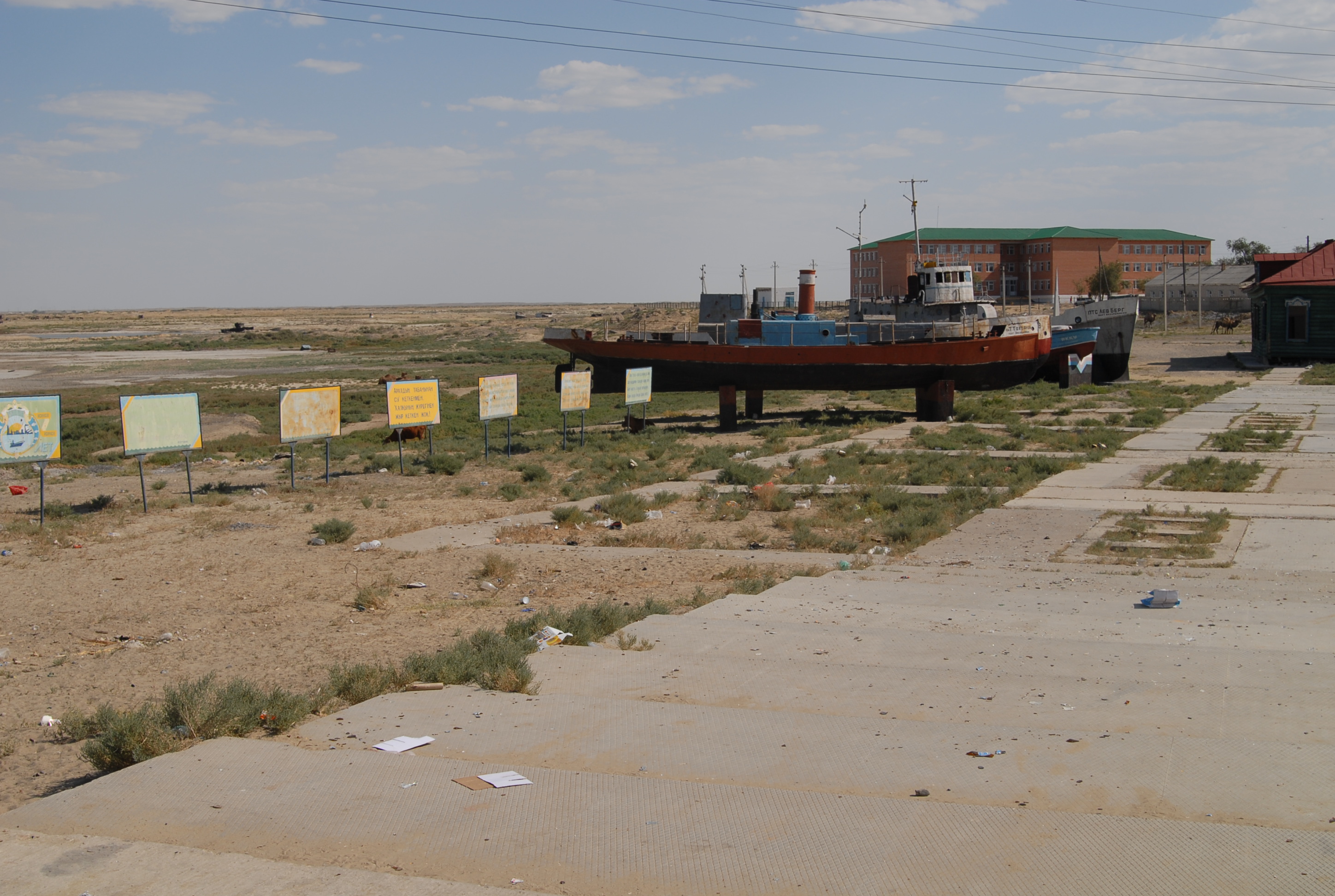 Nel pomeriggio arriviamo ad Aral, citta in riva al mare d'Aral, che ora però è distante 30 kilometri. Ci dicono che il mare si è ritirato per le