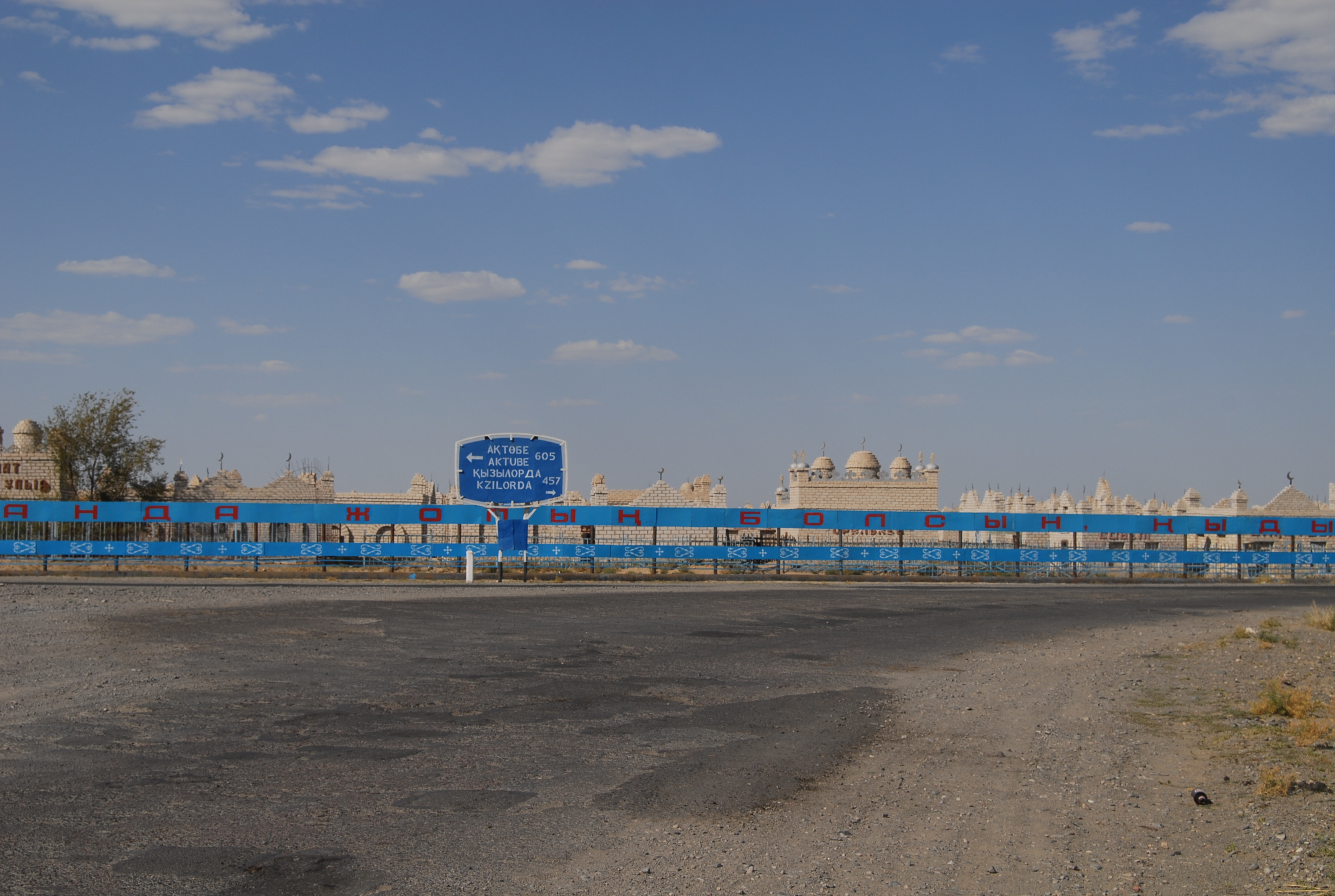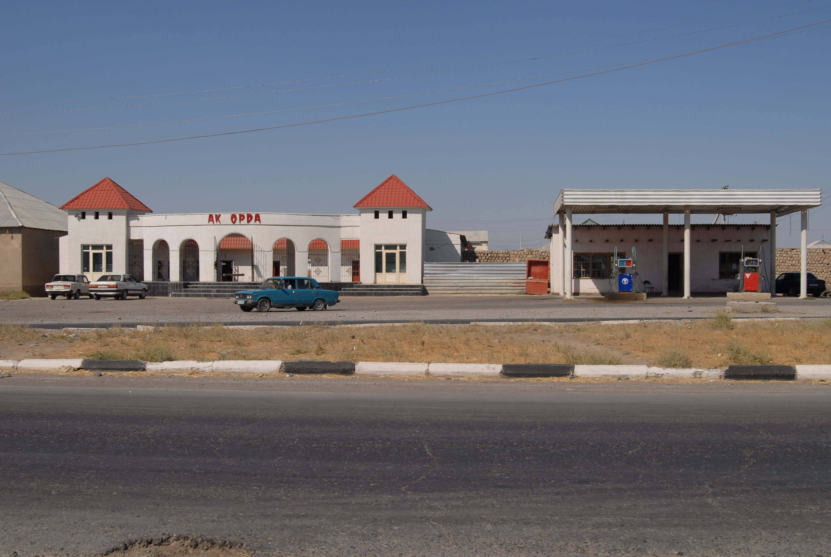 proprietà russa in affitto dal Kazakistan, pure il distributore è russo e si paga il gasolio in rubli. Arriviamo al paese e anche lì c'è la