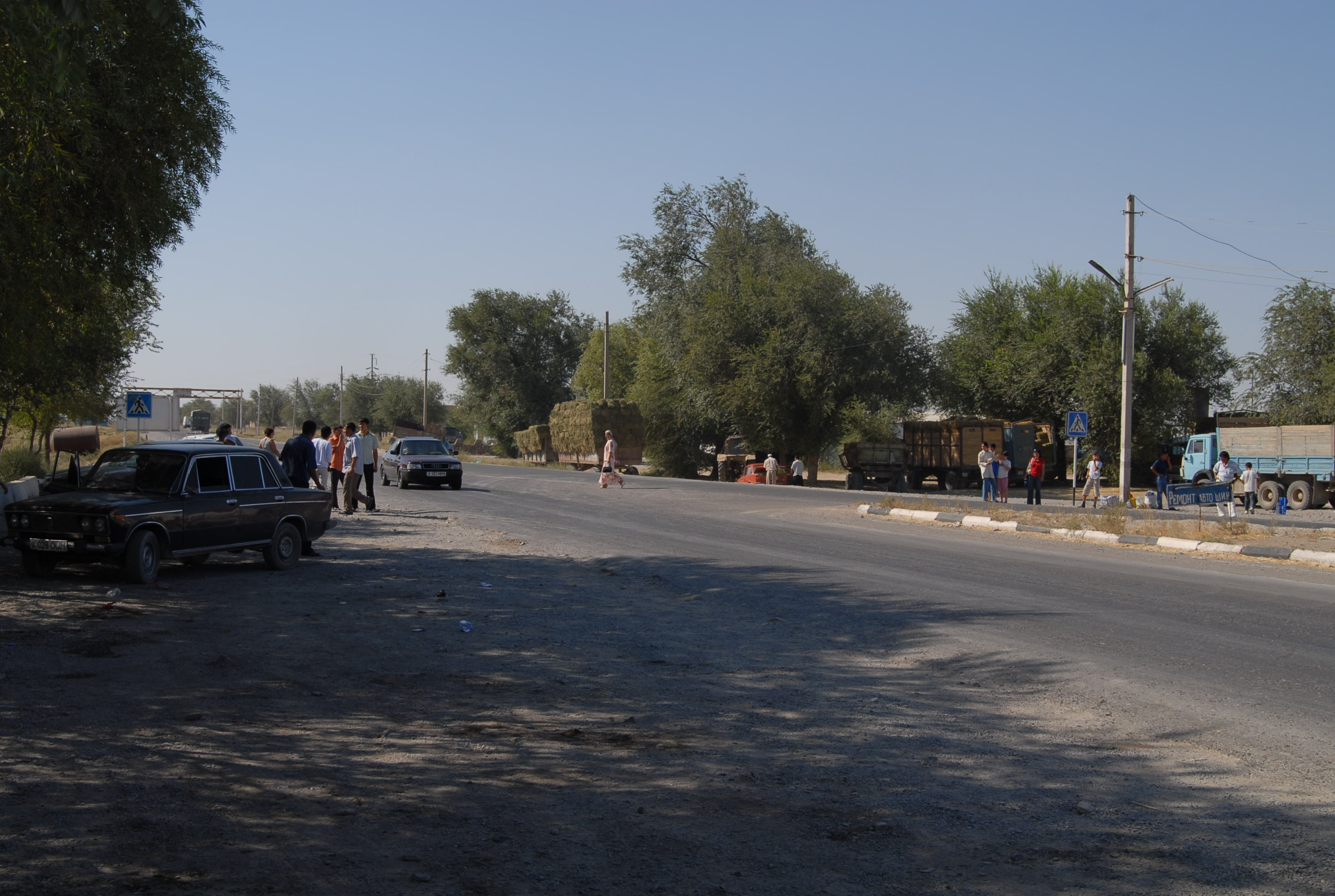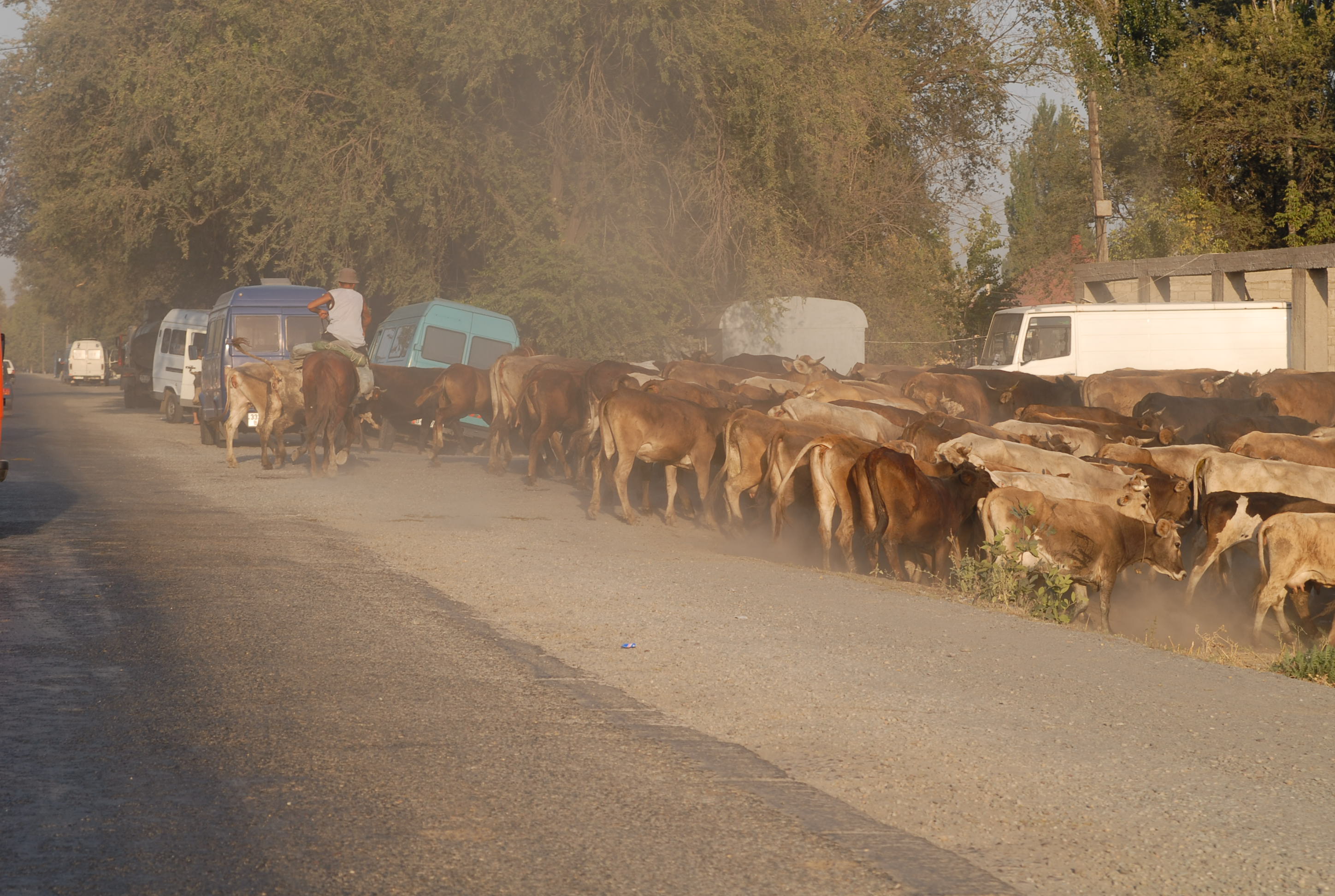 perso l'orologio, torniamo in hotel a cercarlo, ma niente. La strada verso la frontiera Kirgiza è passa in mezzo a molti paesi, è piuttosto trafficata,