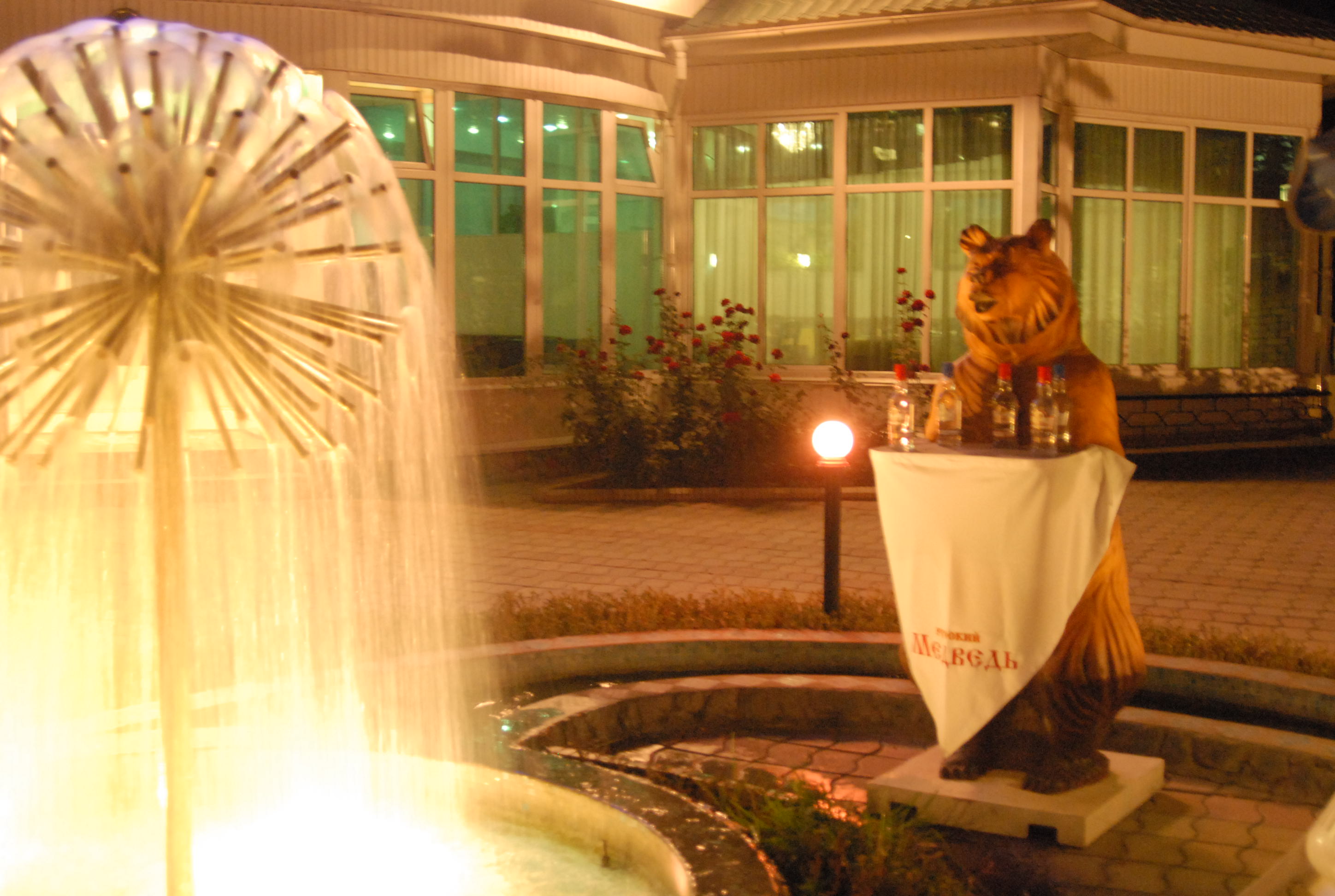 Finita la cena dovremmo tornare all'hotel, ci prende un pò di sconforto a pensarci, allora Natalia si offre di portarci in uno che conosce lei. Accettiamo. Arriviamo nell'altro hotel che è molto bello, un pò fuori dal centro, ma costa 40 dollari a stanza e così dopo un pò di pensate decidiamo di tornare nel nostro. Sarichiamo la macchina poi Michal ed io andiamo al supermercato a comprare acqua e coca cola e le tavolette contro gli scaraffoni, ho il sentore che ce ne siano parecchi. Quando arriviamo ci facciamo indicare dal tipo insonnolentito dov'è la doccia.... Una cosa mai vista nemmeno nei peggiori hotel russi! Non avrei il coraggio di togliermi le scarpe lì dentro nemmeno se mi pagassero, il bagno non lo andiamo nemmeno a vedere, andiamo a fare pipì nel viale, ci viene una depressione tale che dormiamo, avviluppati nei sacchi a pelo, malissimo. | |