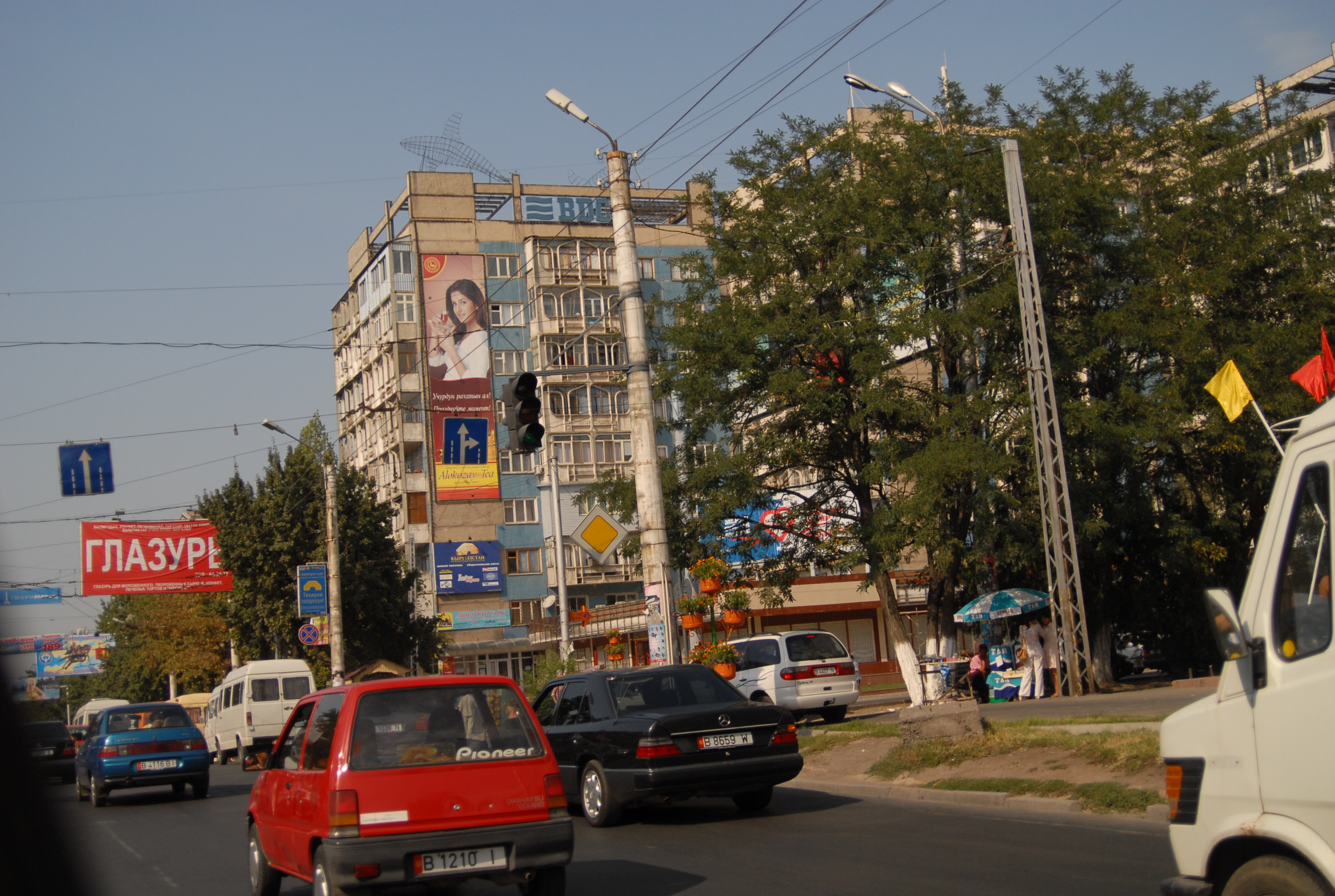 venerdì 25 agosto, Bishkek Abbiamo appuntamento con Natalia che ci accompagna a fare un giro in montagna, Brave-heart è molto combattuto, ha appuntamento alle 2 con la ragazza di ieri, e non sa se venire con noi. Ma certamente non torneremo per le due, quindi se ne va a spasso per Bishkek nell'attesa. Antonino invece si aggrega perché non è riuscito a trovare al telefono la sua ragazza e quindi ogni mezzòra ci fa telefonare. | |