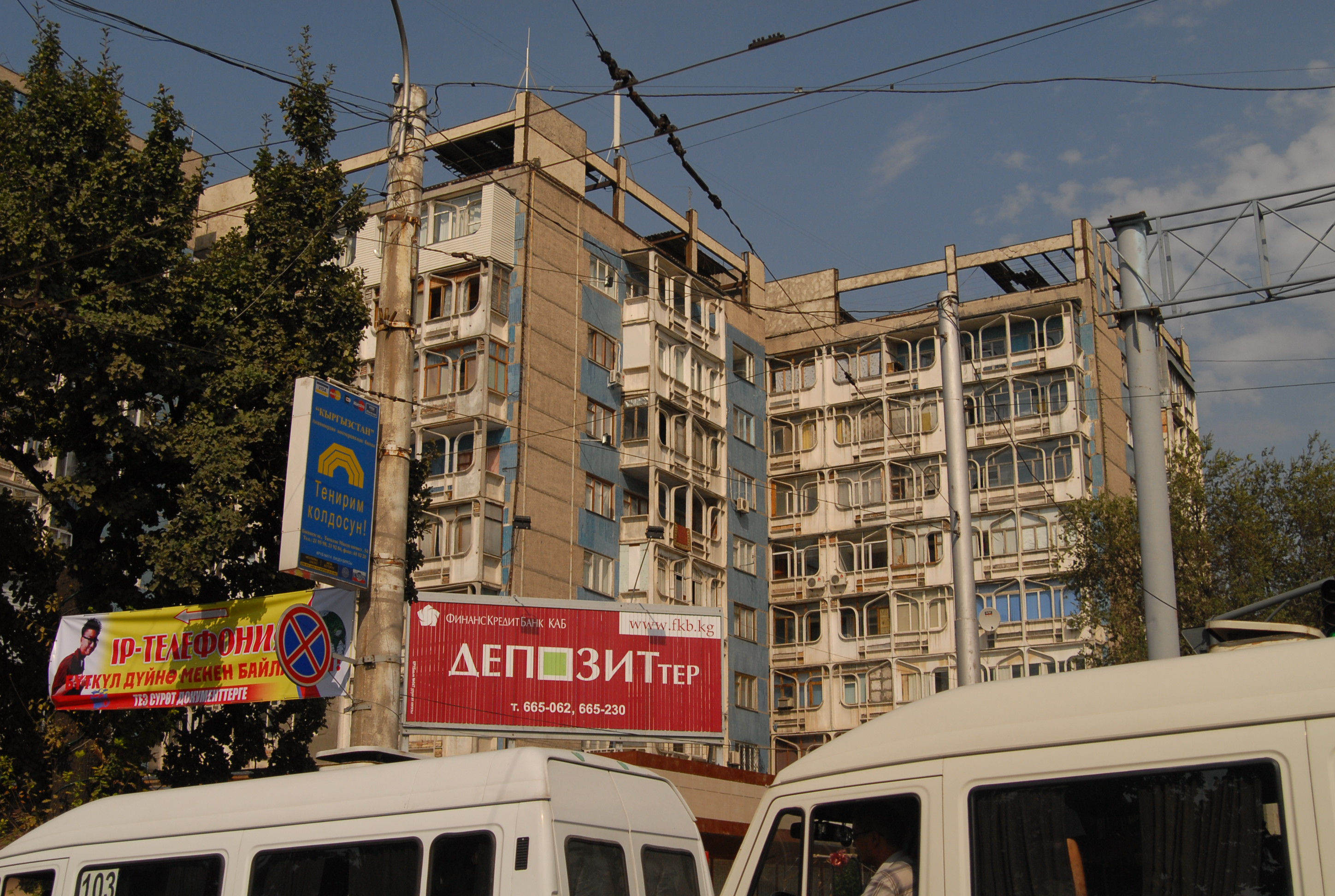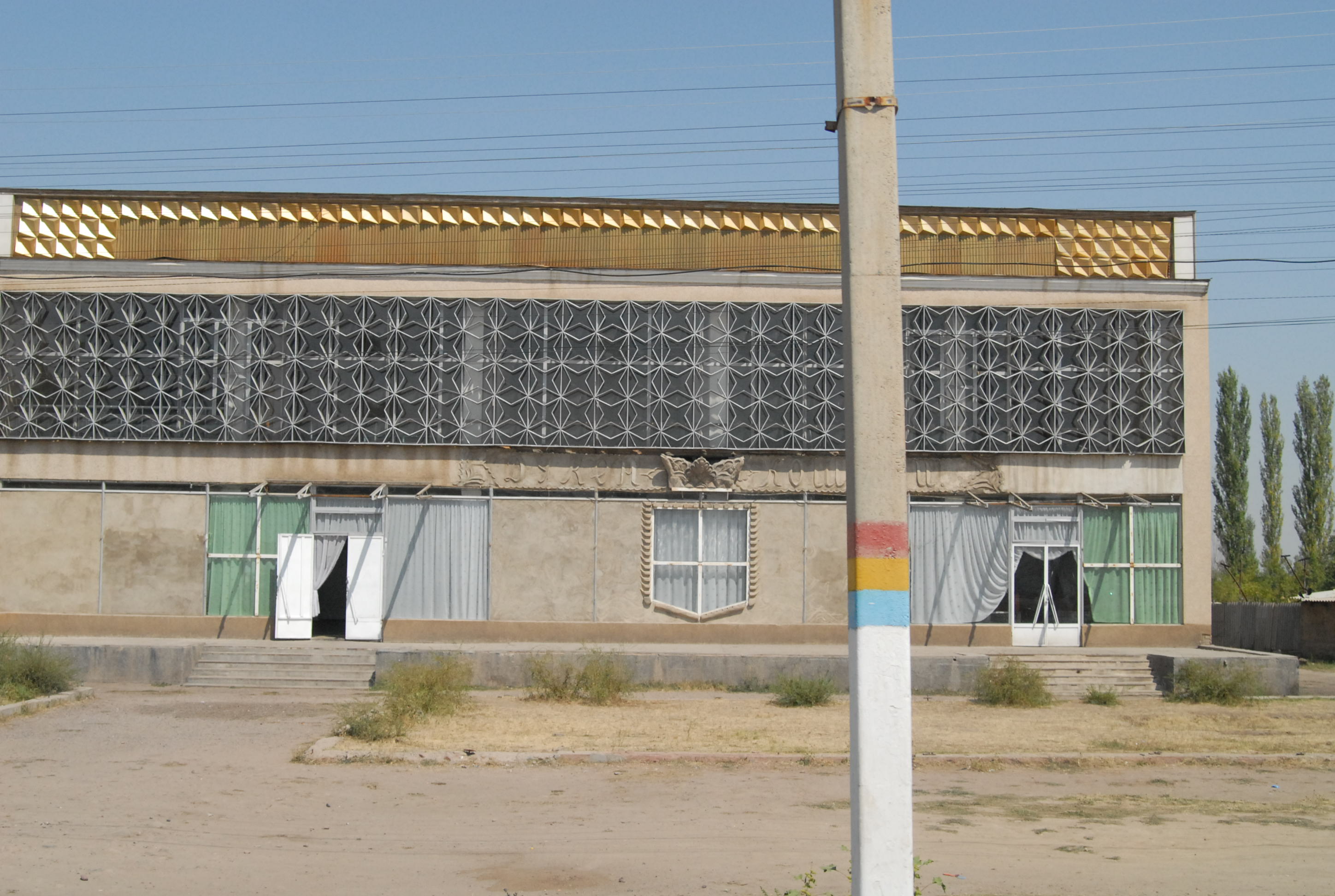 giovedì 24 agosto, Bishkek Per questo viaggio avevamo due visti russi, tre kazaki, uno kirgizo e uno uzbeko. In un primo tempo si pensava infatti di rientrare di nuovo dalla Russia, ma ora, sapendo che a Tashkent, alla fine dei meeting, saremo soli, con la libertà quindi di decidere il rientro, abbiamo deciso di evitare un ritorno già conosciuto, e di non usare il terzo visto kazako e il secondo russo, ma di farci fare ora i visti o per il Turkmenistan e l'iran o per il Turkmenista, l'azerbaijan e la Georgia. Questa mattina quindi avevamo previsto di andare all'ambasciata turkmena, però il nostro albergo fa così schifo, ma così schifo, che alle 7 del mattino siamo già lì che chiamiamo i due prima che venga loro in mente di andare a fare la doccia e con loro andiamo a cercarne un altro. Brave-heart è tutto contento che anche il lonely planet menzioni (come molto duro) l'albergo di questa notte. Dopo un sacco di giri, con prezzi superiori ai 20 euro, troviamo un hotel in una scuola. Anzi due. Ce n'è uno al terzo piano medio e uno al quarto piano bello. Noi optiamo per il medio naturalmente a metà del prezzo di quello del quarto piano. I due invece prendono la stanza sopra, per poi, il siciliano lamentarsi con Brave-heart che non valeva la pena..
