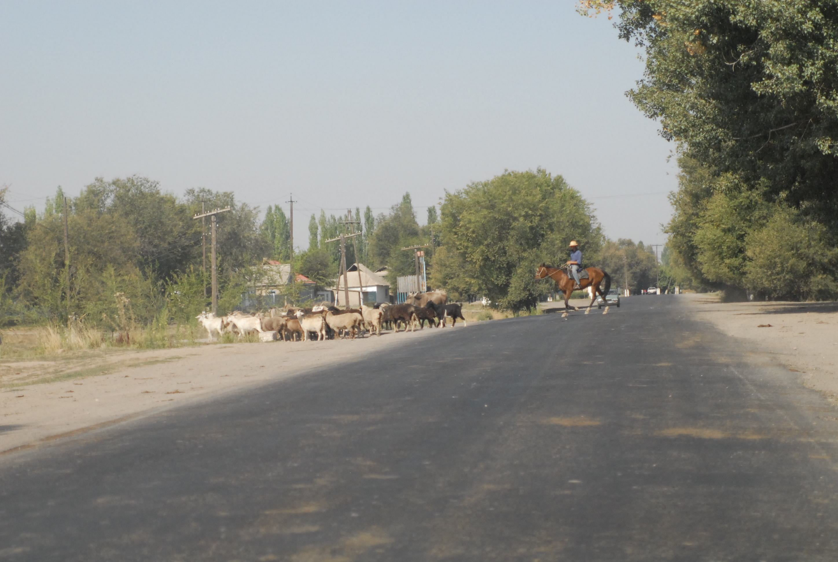 | Il pranzo mi calma, risaliamo quindi in macchina e ci spariamo verso Tashkent, sono solo 120 kilometri magari ce la facciamo prima del buio | |