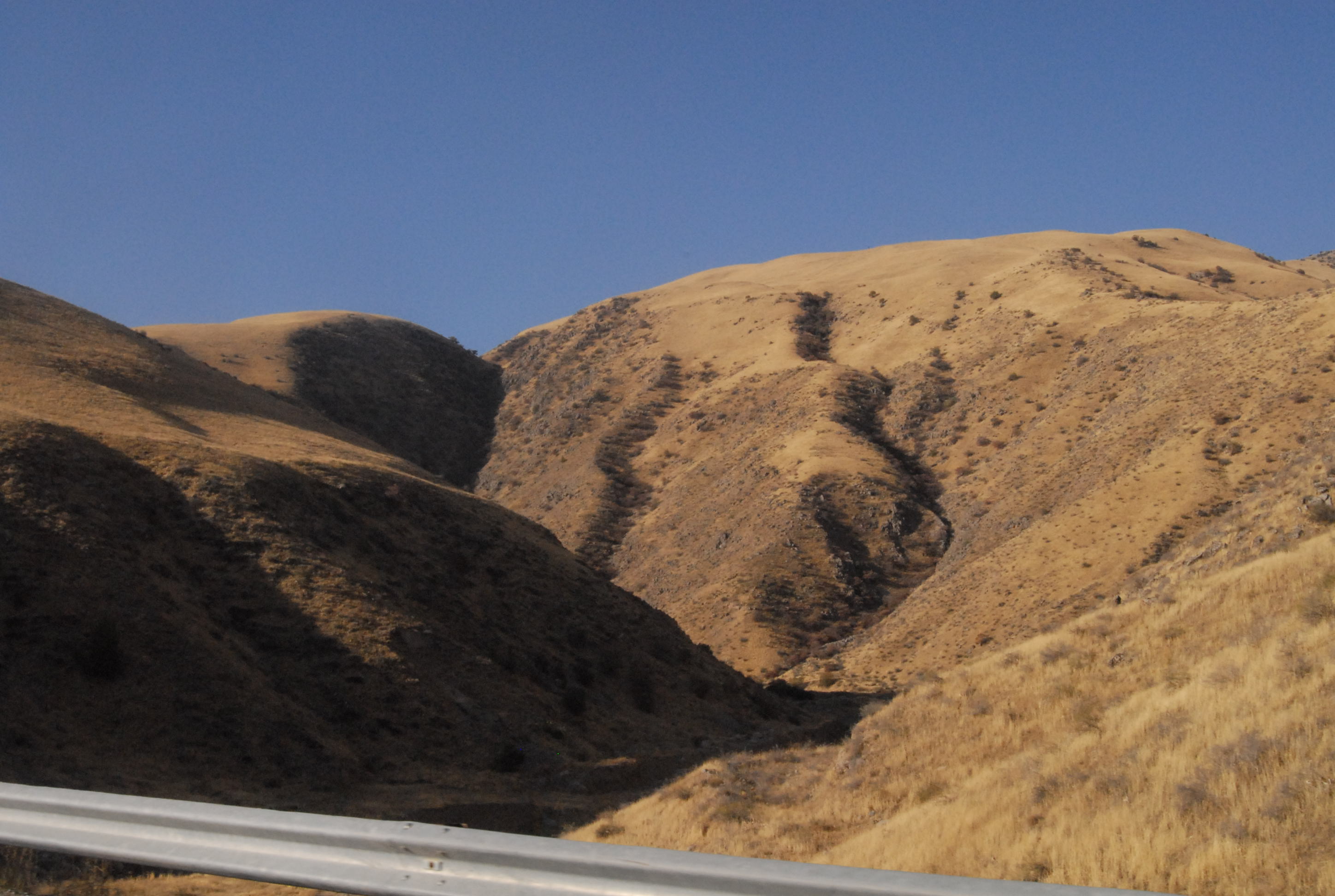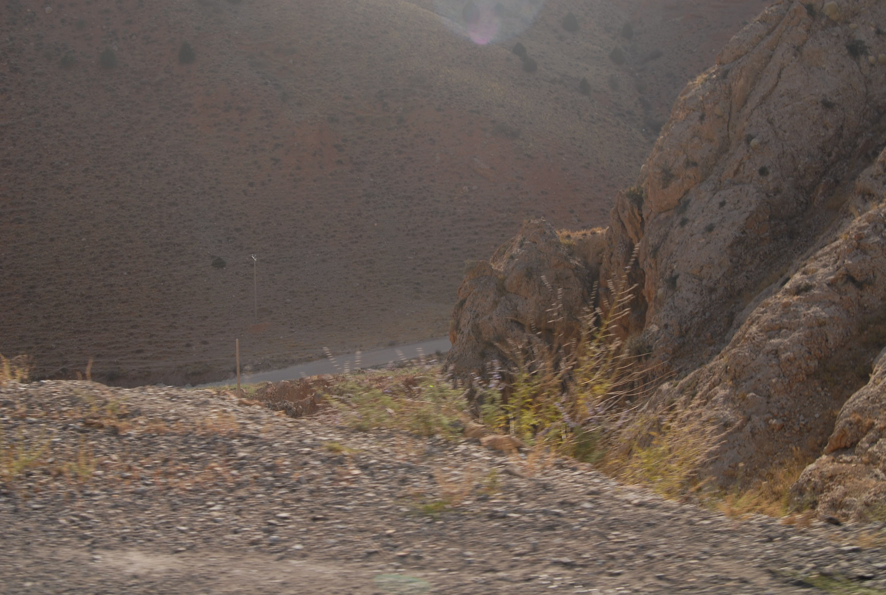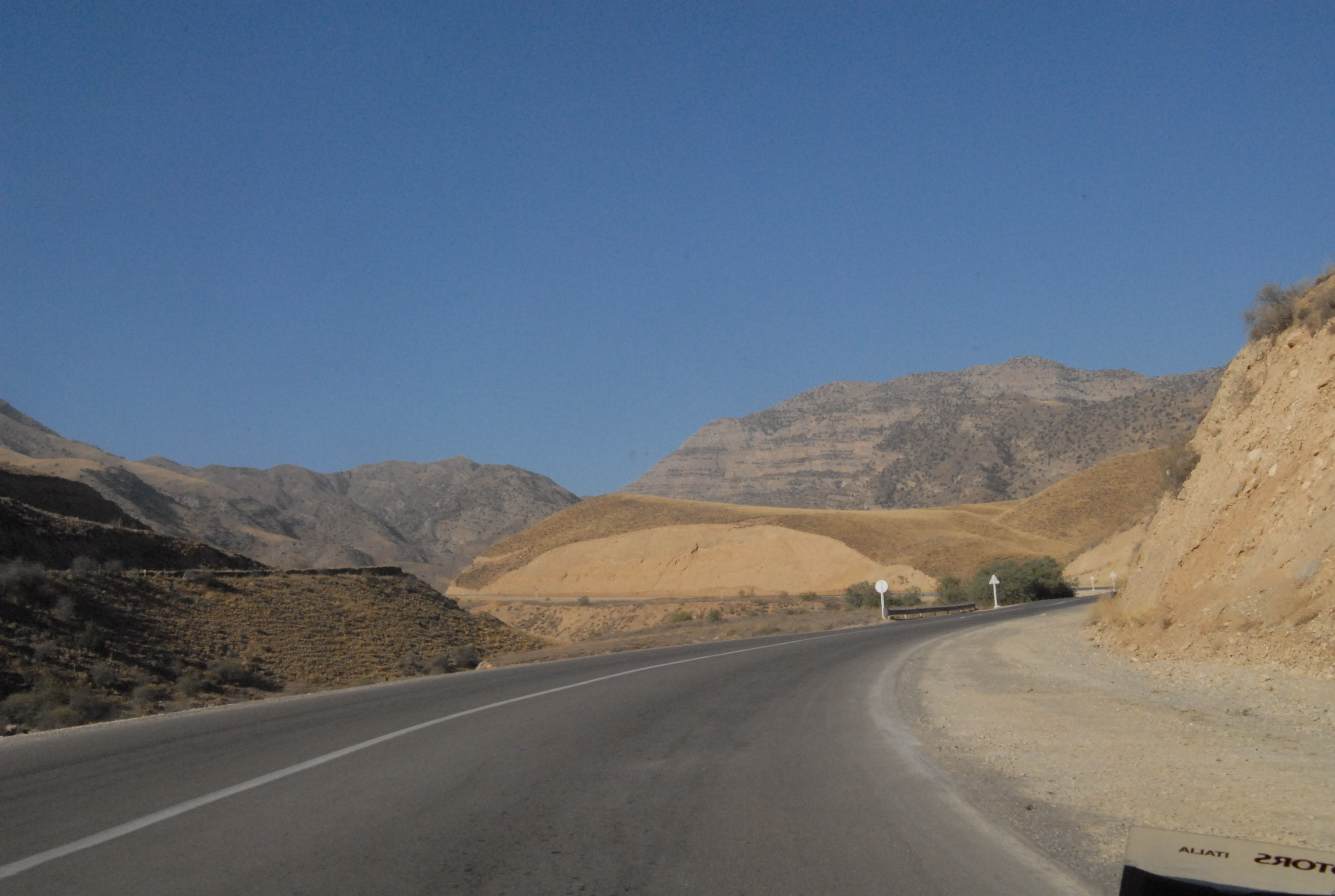 Sono molto emozionata e lo scenario è davvero inconsueto e sconcertante. La strada, bella, pulitissima e deserta si snoda tra montagne spoglie e scoscese. Per tutto il lungo percorso