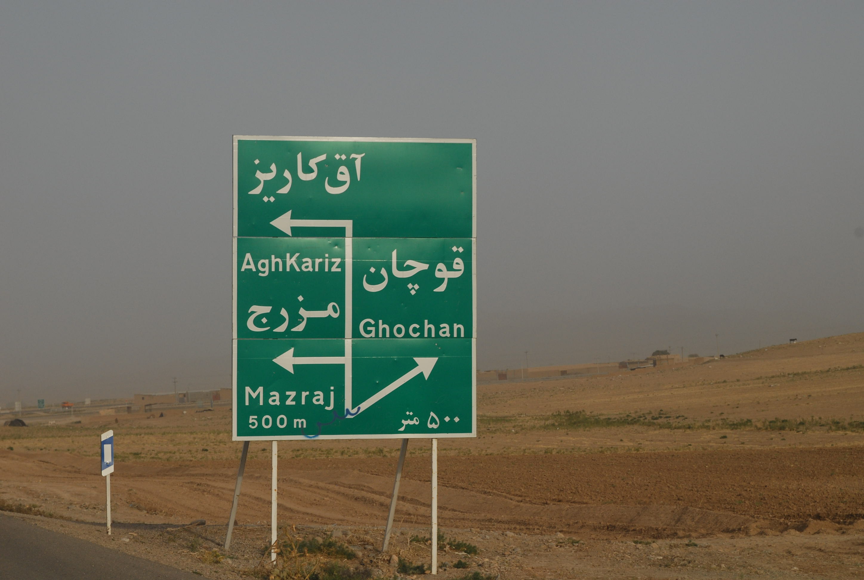 come è chiarissimo dal cartello (!?!), stiamo arrivando a Gochan che è la prima città che incontriamo. Decidiamo di fermarci a dormire qui. Tira un vento