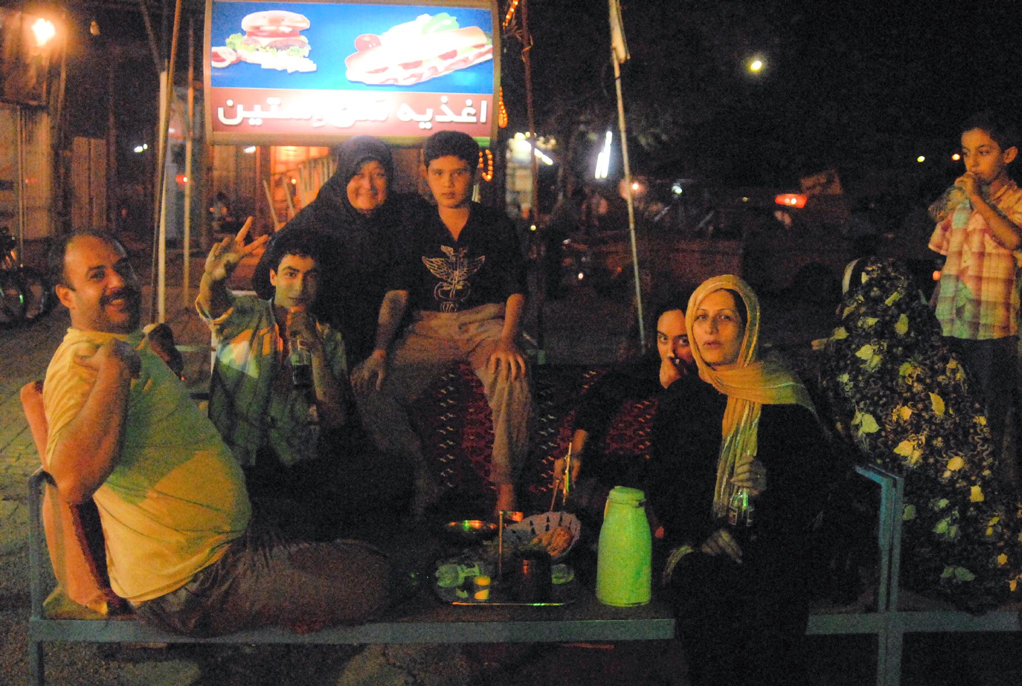 è laureato a Baghdad in geografia. Ci accompagna in un ristorante, ci aiuta a farci servire, poi deve tornare perché ha ordinato una pizza e deve