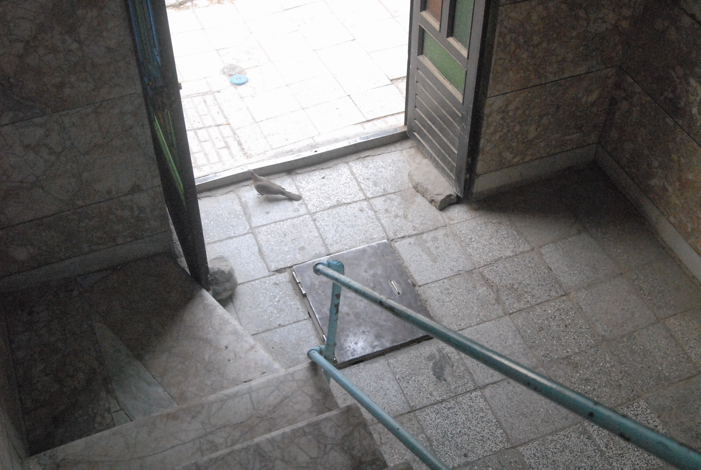 Sulle scale c'è un colombo